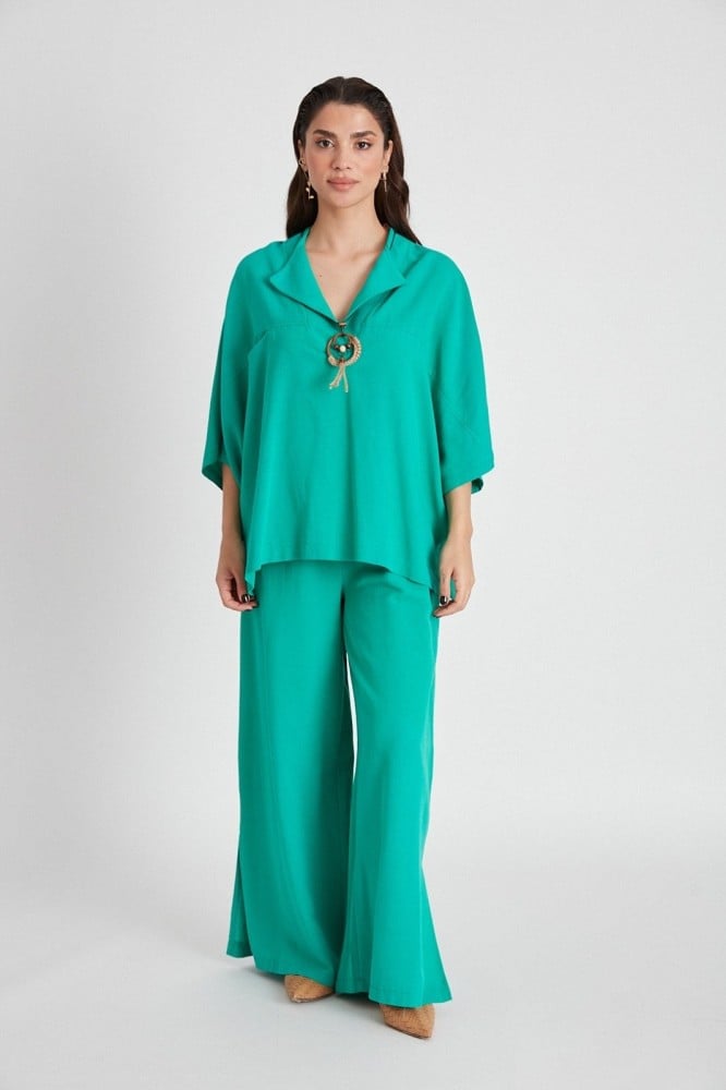 احصل على الرقي والراحة في آن واحد مع بدلة نسائية PERRY التركية الكاجوال. مكونة من قميص فضفاض وبنطلون فضفاض، تجمع هذه البدلة بين الراحه والرقي لتناسب أي مناسبة.