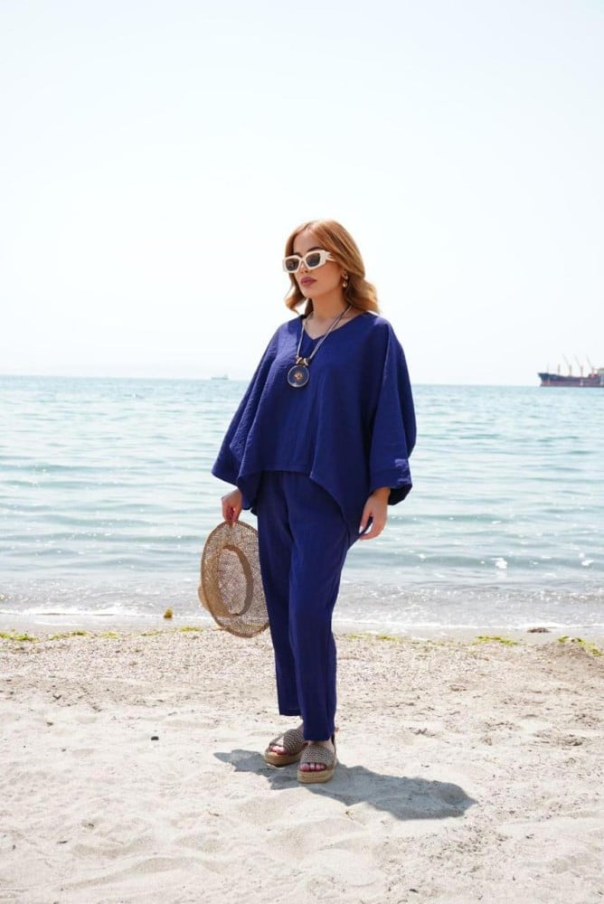 طقم بدلة نسائي المكونة من قميص و بنطلون فضفاضين خيارًا مثاليًا للنساء اللواتي يبحثن عن الأناقة والراحة في آن واحد,اجعليها جزءًا من مجموعتك لتتألقي بإطلالة عصرية ومريحة في جميع المناسبات.