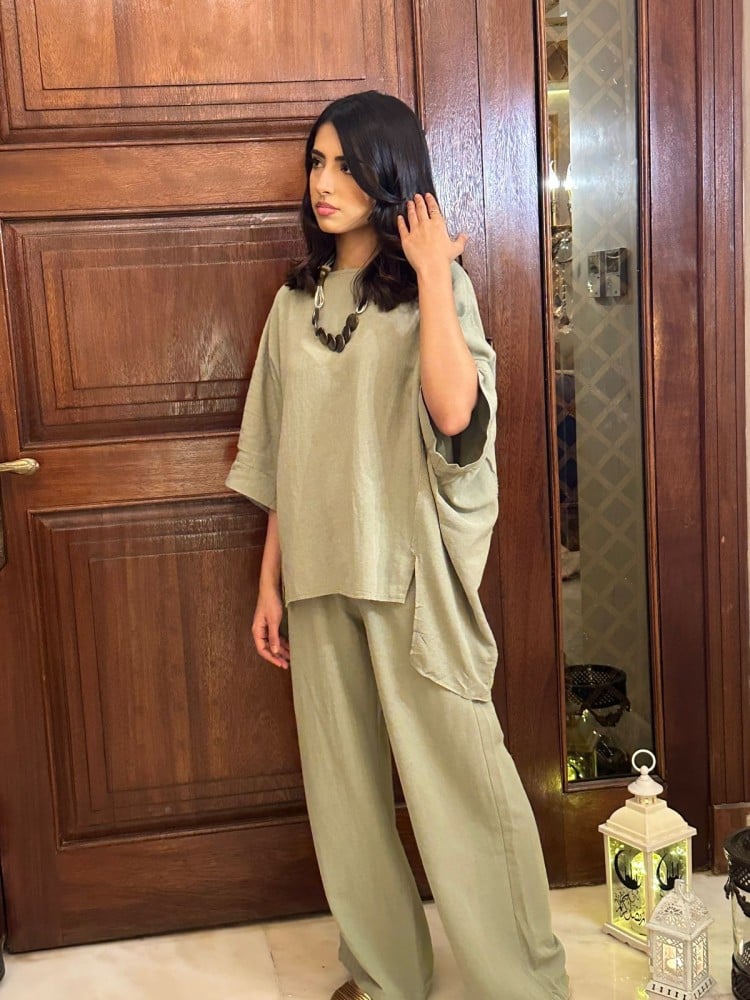 طقم بدلة نسائي المكونة من قميص و بنطلون فضفاضين خيارًا مثاليًا للنساء اللواتي يبحثن عن الأناقة والراحة في آن واحد,اجعليها جزءًا من مجموعتك لتتألقي بإطلالة عصرية ومريحة في جميع المناسبات.