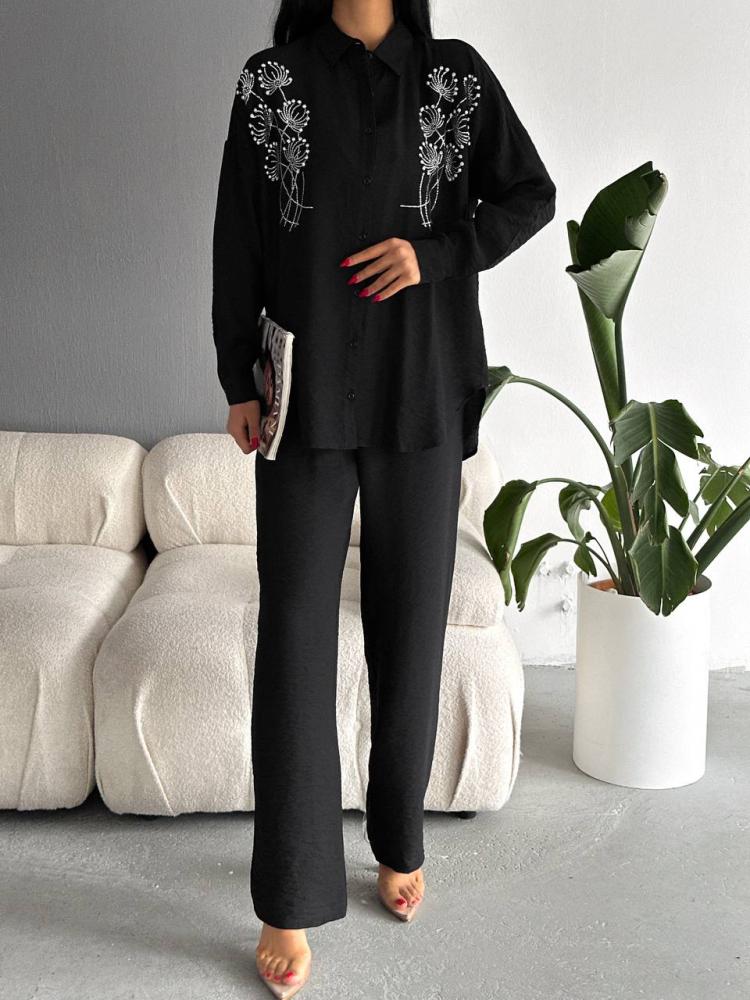 - تم تصميم البنطلون بقصة ملائمة تلائم مختلف أشكال الجسم، مما يساعد على إبراز جمال وأنوثة من ترتديه.