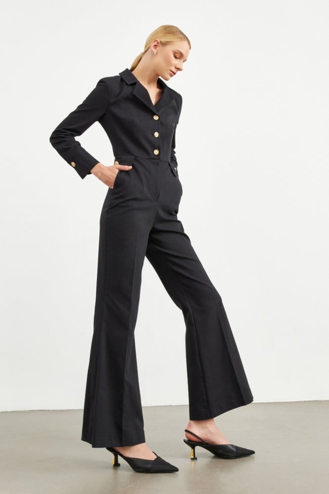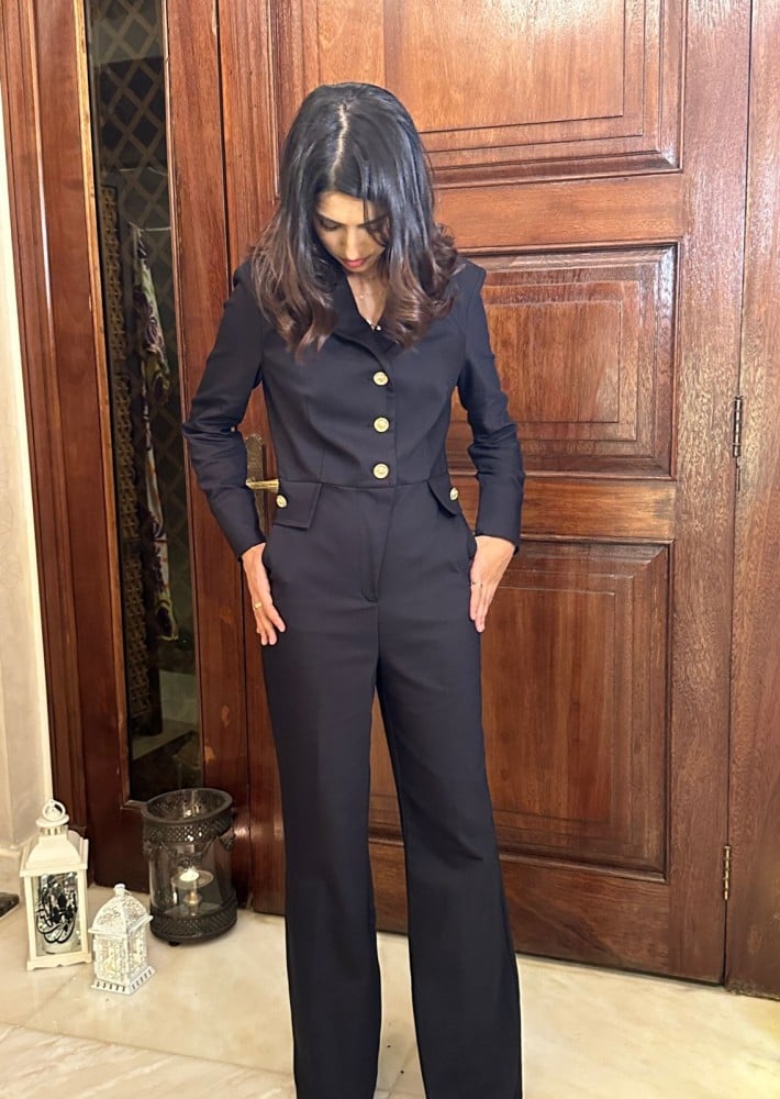 - التصميم: جمبسوت بتصميم فاخر وأكمام طويلة و أزارير ذهبية زادت من فخامته.