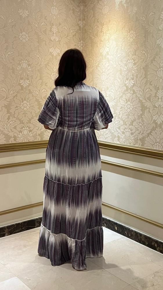 فستان بنفسجي هيمالايا مصنوع من خامة فيزكوز فاخرة وناعمة جدًا، تلتف حولك بخفة وتنساب بانسيابية تخطف الأنظار.