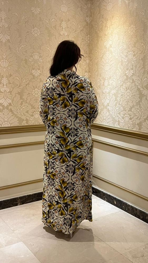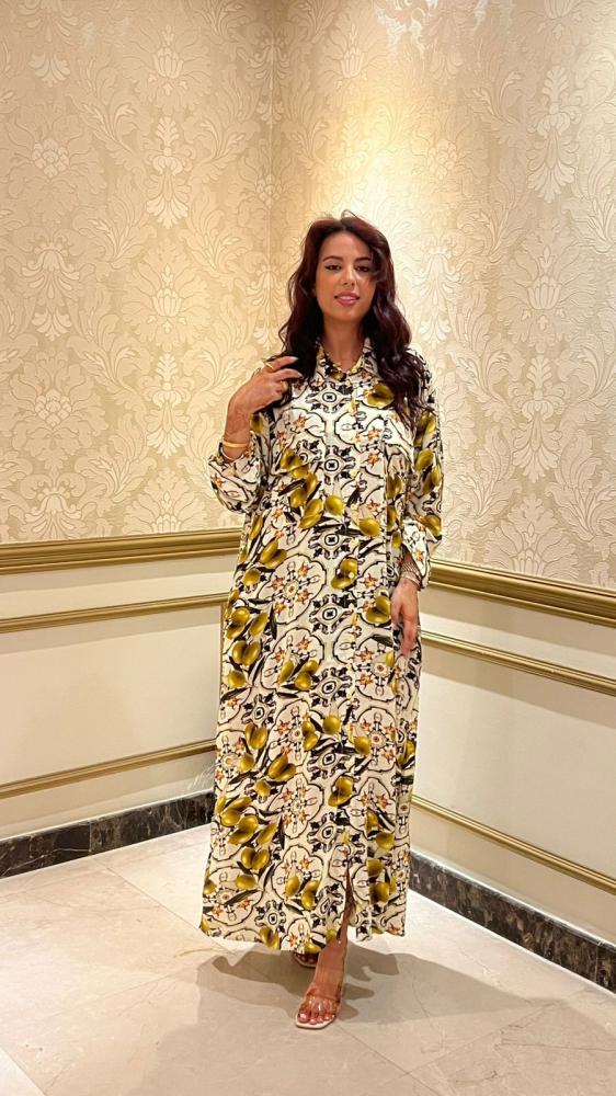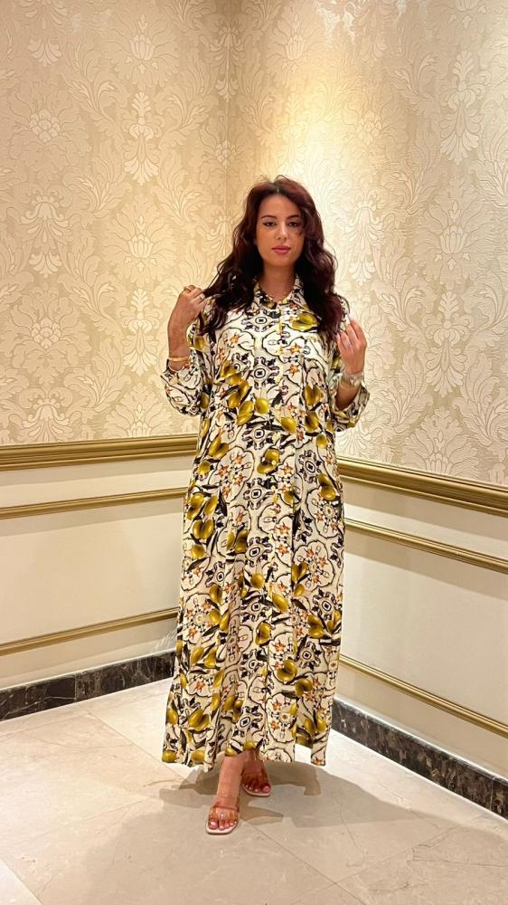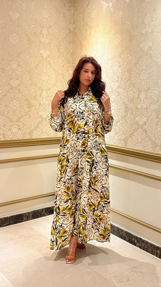 فستان جولين بتصميم أنثوي منعش مستوحى من بساتين الليمون الإيطالية. بنقشة أنيقة تجمع بين الأصفر الزيتوني والأوف وايت على أرضية ناعمة، مع قصة مريحة وأزرار أمامية لسهولة اللبس. مثالي لإطلالة صباحية أو طلعة راقية.