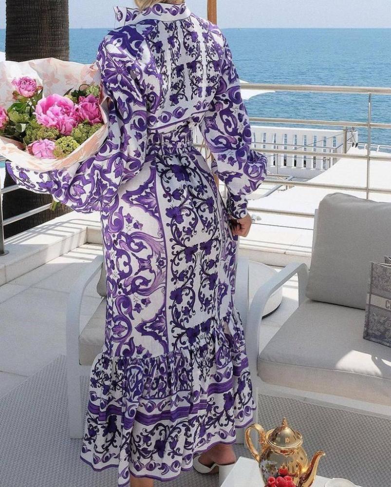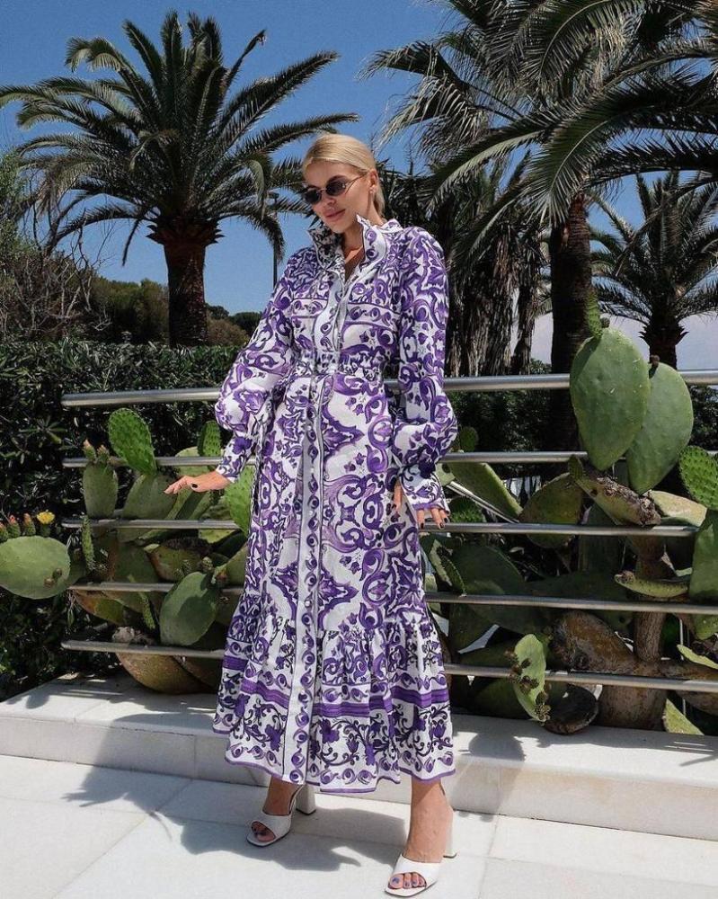 فستان طويل بنقوش عرقية فاخرة - لمسة تجمع بين الأصالة والحداثة