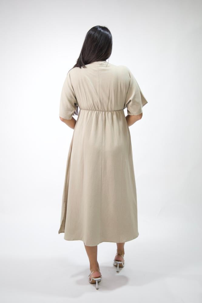 - تم تصميم فستان مفتوح من الامام بقصة ملائمة تلائم مختلف أشكال الجسم، مما يساعد على إبراز جمال وأنوثة من ترتديه.