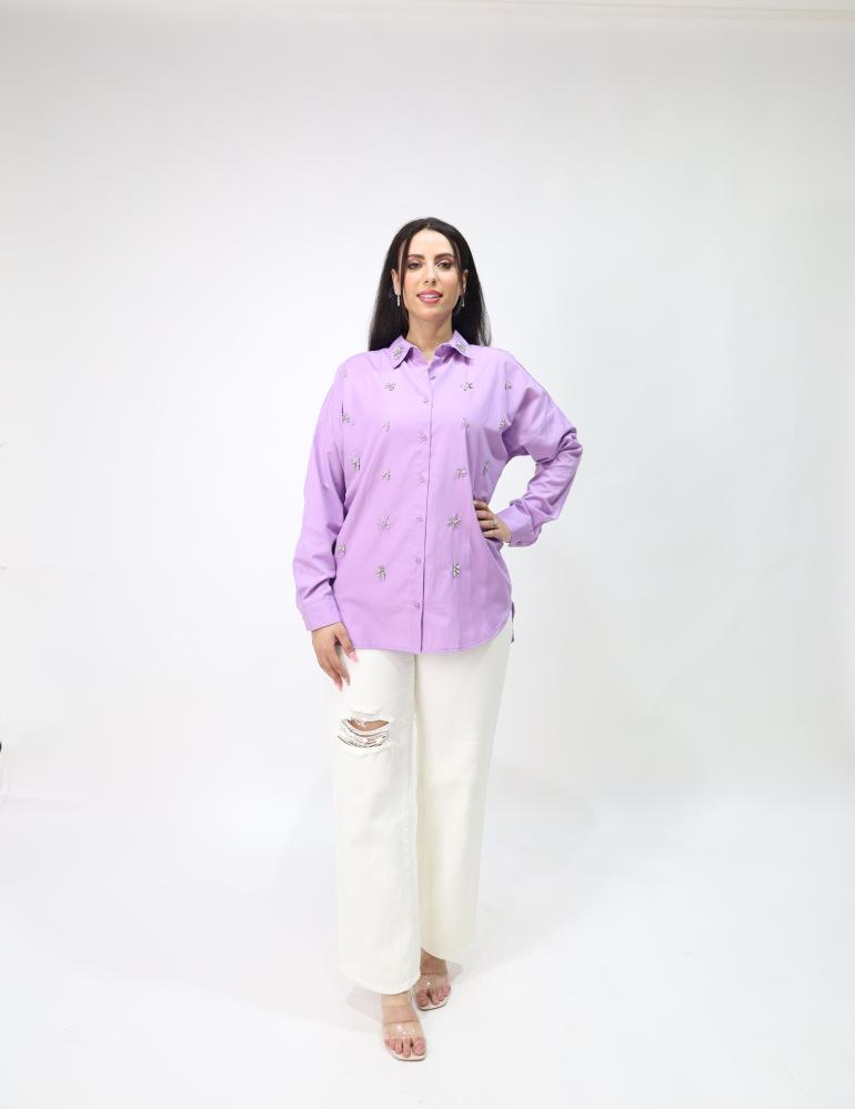 قميص مطرز بكريستالات وأحجار فخمة مصنوع من خامات عالمية ومريحة، صناعة تركية فاخرة.