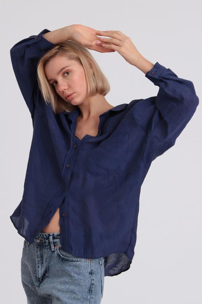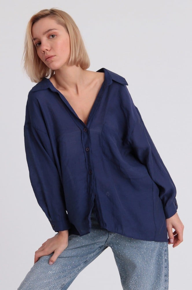 قميص ساده كحلي نسائي كاجوال، صناعة تركية -PERRY