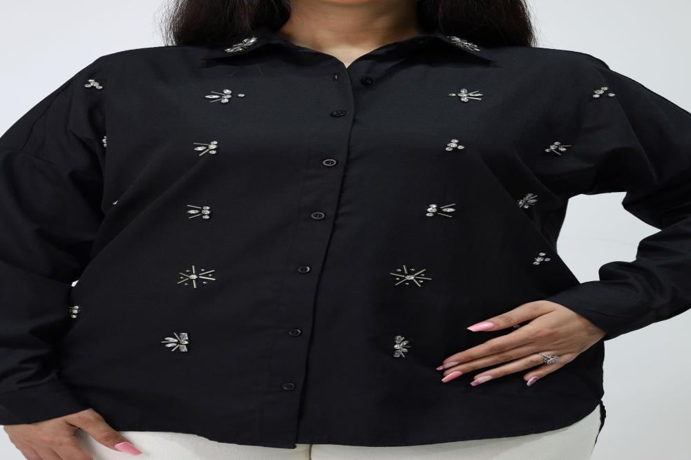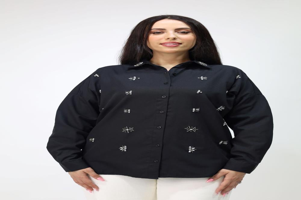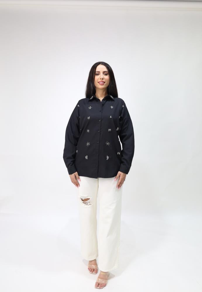 قميص مطرز بكريستالات وأحجار فخمة مصنوع من خامات عالمية ومريحة، صناعة تركية فاخرة.