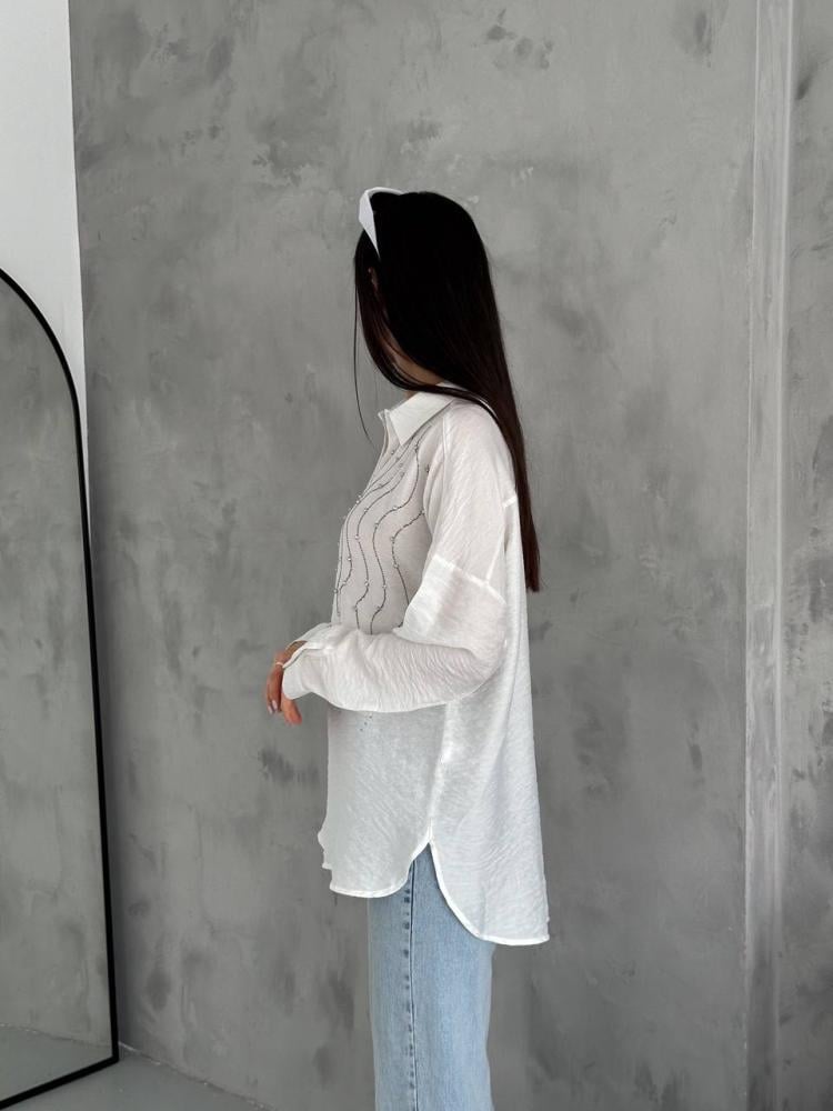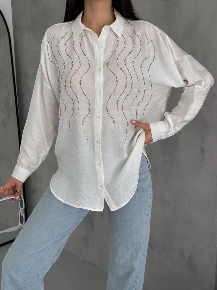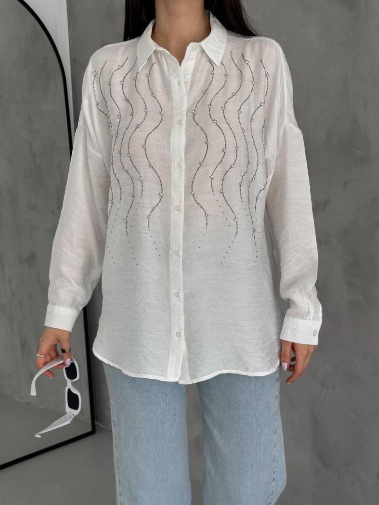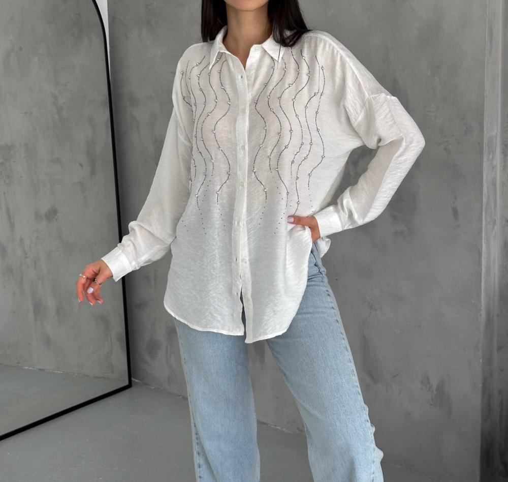 قميص مطرز بكريستالات وأحجار فخمة مصنوع من خامات عالمية ومريحة، صناعة تركية فاخرة.
